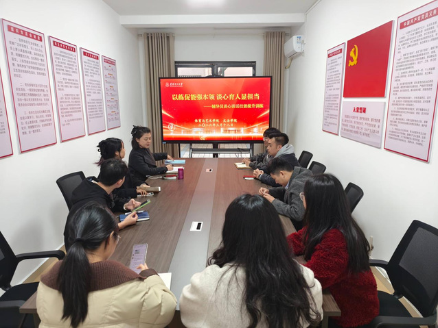 为进一步提升辅导员谈心谈话工作的专业性和针对性,强化思想政治教育的亲和力与引领力,3月18日,体育与艺术学院联合文法学院在学府校园学生公寓3栋一站式服务社区开展辅导员谈心谈话技能提升专项训练。体育与艺术学院党委副书记周露、体育与艺术学院全体辅导员、文法学院辅导员代表参加此次活动。